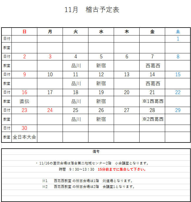 ・ 11/16の直伝会場は落合第二地域センター2階 小会議室となります。